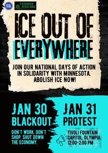 - Olympia: Fri Jan 30 Nationwide Blackout/Sat Jan 31 Ice Out Protest Noon - 2pm