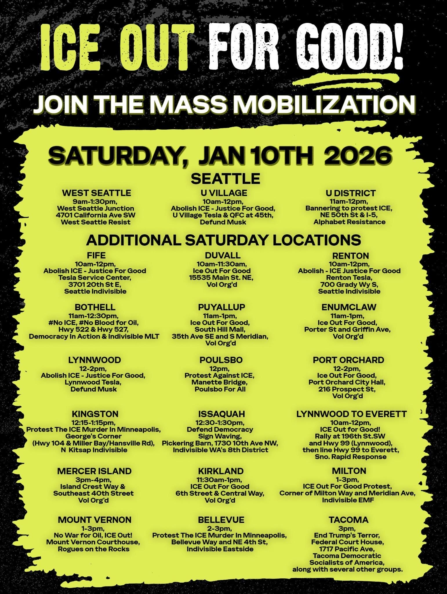 Sat Jan 10 Seattle and Statewide ICE OUT events