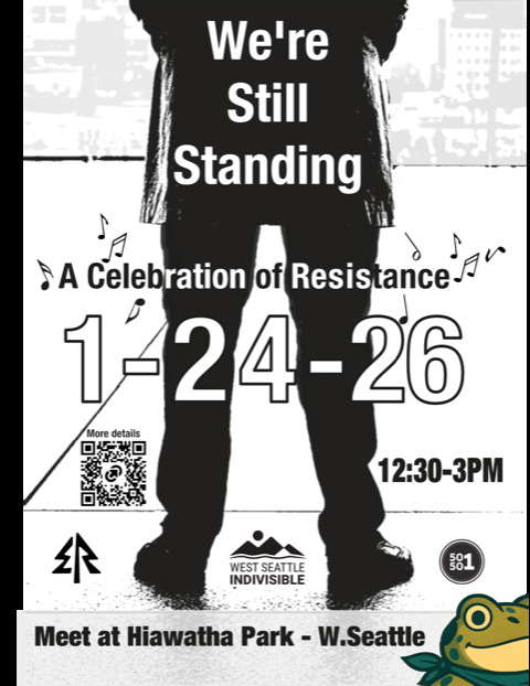 - run by Seattle Indivisible, Evergreen Resistance, Defund Must, 50501, West Seattle Indivisible
