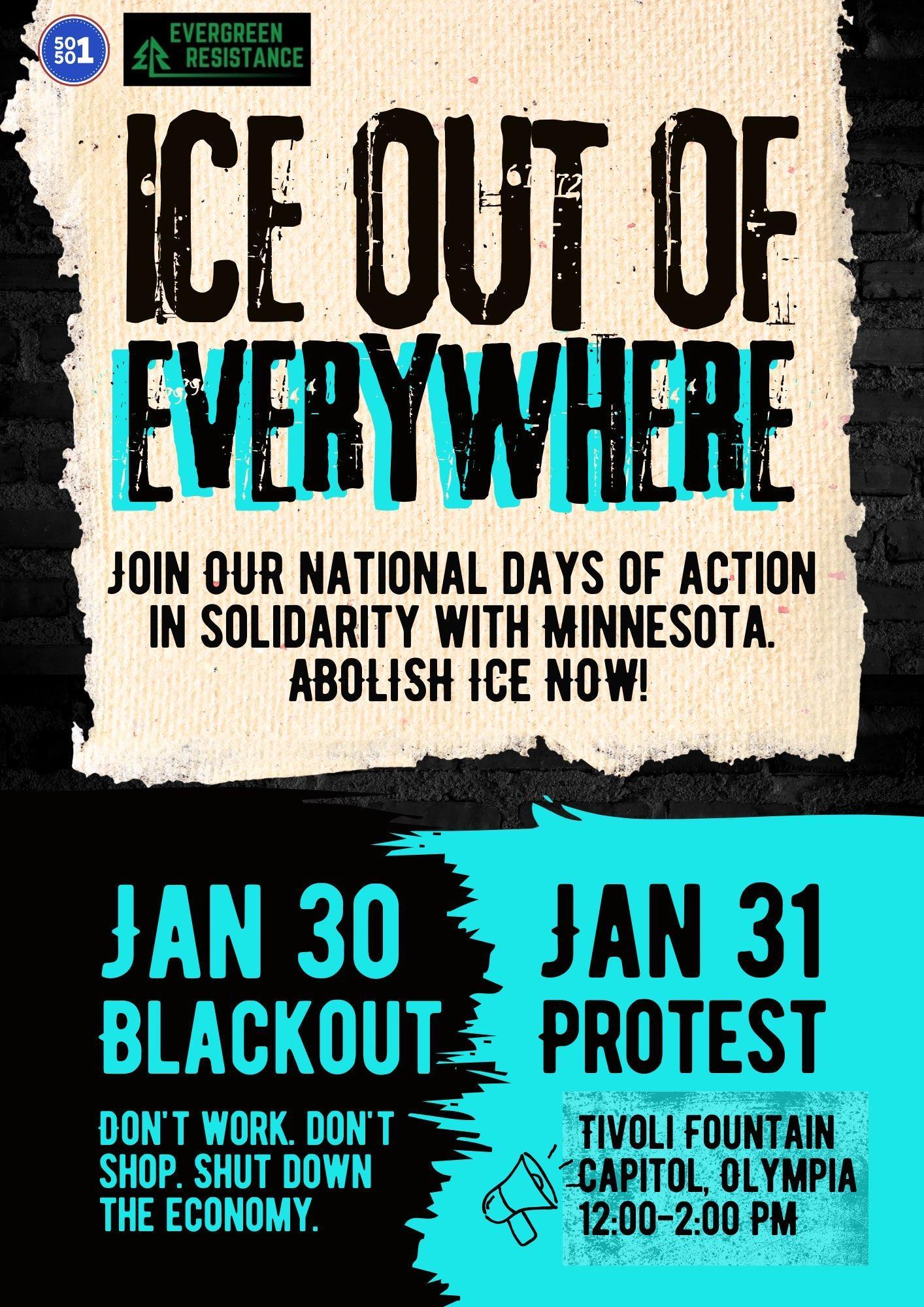 - Olympia: Fri Jan 30 Nationwide Blackout/Sat Jan 31 Ice Out Protest Noon - 2pm